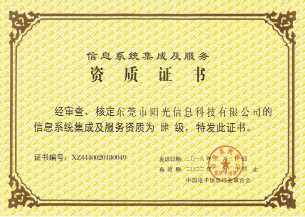 信息系统集成及服务资质肆级